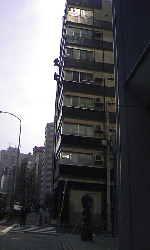 見辛いだろうけど最近よく見る。窓掃除。 これって特殊技能ってか、これを職業にしようと思う事がすごぃ。 朝の通勤時間帯にやってる事がおおぃので最近よく見かけます( ゚∀゚ )