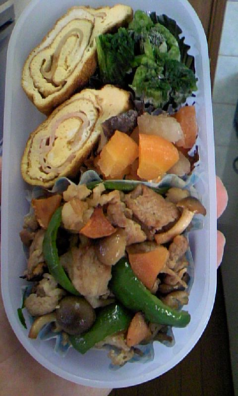 | × [PR]上記の広告は3ヶ月以上新規記事投稿のないブログに表示されています。新しい記事を書く事で広告が消えます。 ちょっとサボったので先週の弁当がUP出来ずでした。 ベーコン入り卵焼き 豚・ピーマン・シメジの炒め 自家漬 おしんこ 色取りの王様 ミニトマト 枝豆ご飯。 この日も娘の弁当 作りました。 メインは一緒で冷凍しておいた煮物+ホウレン草 娘はトマトが嫌いなので人参を多用して赤を入れました。 色取り良くってのは難しいですね。 今週は新メニューに挑戦しようと思ってます。 クックパッドで研究しなきゃwww 拍手いただけると励みになりんす。