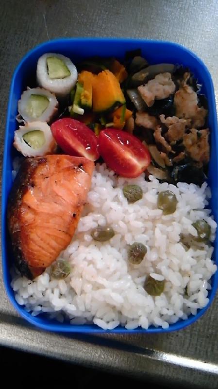 PR ビールの定番おつまみ 枝豆 だけど 大くゆですぎてのっこちゃう事も・ そんなときはこれです。 枝豆ご飯。 普通の白ご飯に枝豆散らして混ぜるだけ。 枝豆の塩気があるので味付けなしでおいしいです。 今日の減塩的な弁当 豚の生姜焼き風・薄めたメンつゆとたっぷりのショウガで味付け カボチャとピーマンのサラダ。特に味付け無しで。 鮭は振り塩の物を一回洗って塩を落とします。 今日は薬飲んでるので134-86で 運動もしなければなぁ・・・・ 拍手いただけると少し健康になります。