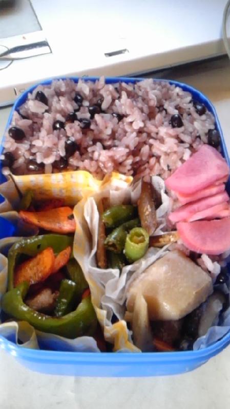暑かったですね~~八月! でも9月になっても暑いね ι(´Д`υ)アツィー でも9月だから6時すぎると暗いよw。 今週は金曜・土曜とお弁当作りました。 食べる物の塩と油には気をつけてます。 二つのお弁当共に 黒豆ご飯です。 腹もちいいのでこのサイズで十分です・ お外で食べると麺類+ご飯のセットなんですけど。 黒豆大豆はダイエットにいいですよ。多分w 上から 鶏肉とピーマン・ししとう・人参の炒め 薄塩仕立て 下は卵焼きとしゃけ 後は相棒が作って冷凍しといてくれた 里芋・人参・ごぼう・椎茸の煮物 塩つくね ごぼうといんげんの胡麻よごし みんな手作りで減塩対応 相棒 ありがとう。 ローン頑張るよww 拍手いただけると塩分減りますw